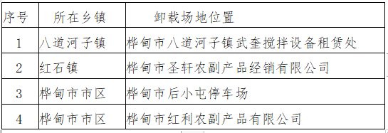 为严厉打击超限超载违法运输行为,合理布局车辆超限超载治理点位,严格规范治超检查和处罚行为,按照《超限运输车辆行驶公路管理规定》(交通运输部令2021年第12号)第三十五条“流动检测点远离公路超限检测站的,应当就近引导至县级以上地方交通运输主管部门制定并公布的执法站所、停车场、卸载场等具有停放车辆及卸载条件的地点或场所进行处理。”规定,现将我市设立4处临时卸载场地公示如下: